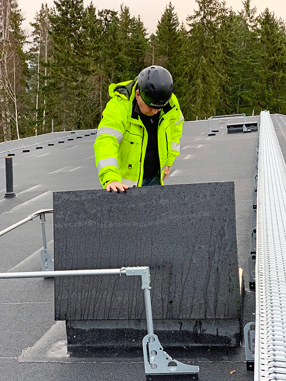 - Fallskyddsutrustning – ska fånga upp en person vid ett fall över en takkant